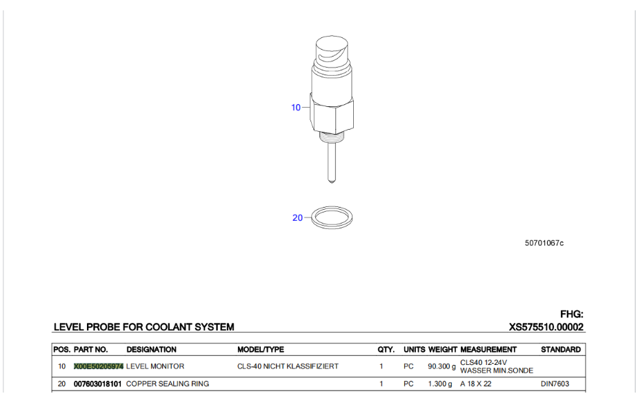 MTU發電機組16V2000液位傳感器-X00E50205974
